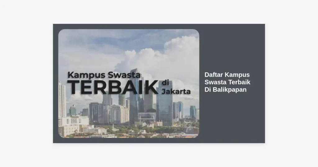 Memilih institusi pendidikan tinggi yang tepat adalah langkah krusial bagi masa depan karier seseorang. Di tengah pesatnya pembangunan Kalimantan Timur sebagai lokasi Ibu Kota Nusantara (IKN), Balikpapan muncul sebagai pusat pendidikan yang semakin diperhitungkan. Bagi Anda yang sedang mencari referensi, mengetahui Daftar Kampus Swasta Terbaik Di Balikpapan adalah langkah awal yang sangat bijak untuk mendapatkan kualitas pendidikan mumpuni tanpa harus keluar kota.